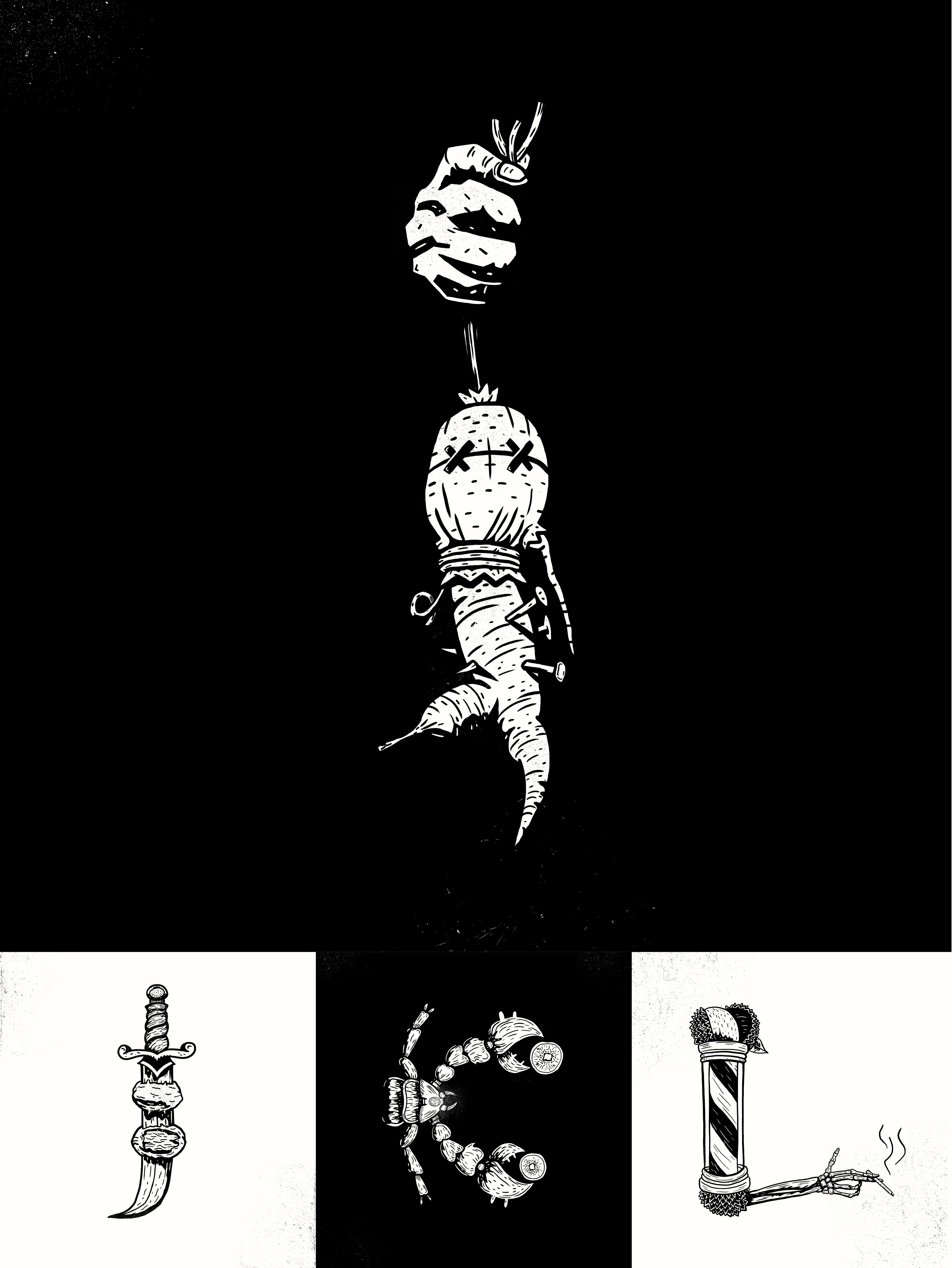 this year, my intention was to mix vegetables, plants and fruits with obscure objects and themes such as death, voodoo, magic or animals that represent said subjects. I hope you enjoy it.